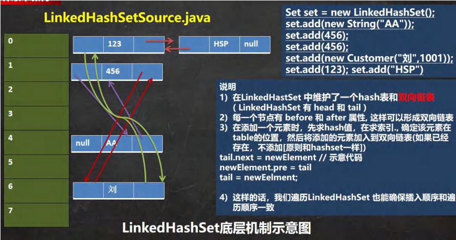关于图解: LinkedHashSet底层就是用的LinkedHashMap,所以那个图解就是LinkedHashMap的图解。如下