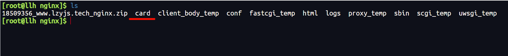 [root@llh nginx]$ unzip 18509356_www.lzyjs.tech_nginx.zip -d card/2.使用Nginx配置Https
